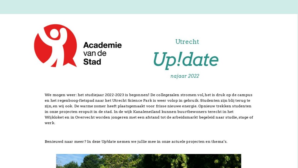 Heb jij ideeën? Neem dan vooral contact met ons op via utrecht@academievandestad.nl.